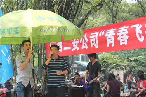 2011年4月23日,集團二安公司團委組織全公司各基層團支部在柳州市雀山公園舉行了主題為“青春飛揚” 露天音樂(lè )會(huì )團日活動(dòng),迎接第92個(gè)“五四青年節”的到來(lái)。公司董事長(cháng)、總經(jīng)理、黨委副書(shū)記黃鼎龍;公司黨委書(shū)記、紀委書(shū)記、工會(huì )主席藍錦??;公司副總經(jīng)理覃幼轍;公司副總經(jīng)理、第三分公司經(jīng)理莫雄清參加了此次活動(dòng)。并為榮獲集團公司一屆二次職代會(huì )文藝晚會(huì )一等獎的演員及榮獲公司2010年度“十佳青年崗位能手”頒發(fā)榮譽(yù)證書(shū)及獎金?;顒?dòng)集表彰、素質(zhì)拓展訓練、氣排球比賽,文藝表演等于一體,形式新穎,精彩紛呈。團員青年們積極參與,各自表演自己的特長(cháng),唱歌、跳舞等節目層出不窮,活動(dòng)現場(chǎng)氣氛熱烈,高潮迭起,展現出了二安青年員工朝氣蓬勃、積極向上的精神面貌,吸引了不少?lài)^(guān)者的眼球。此次活動(dòng)的開(kāi)展,增進(jìn)了團員青年們的溝通交流,企業(yè)凝聚力進(jìn)一步增強,更好地促進(jìn)廣大團員青年員工立足崗位,扎實(shí)工作,不斷創(chuàng )新,充分發(fā)揮團員青年生力軍作用,在公司建功立業(yè)過(guò)程中體現青年人的人生價(jià)值,為公司健康快速發(fā)展奉獻青春力量!