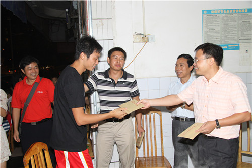 公司黃鼎龍董事長(cháng)(右一)、藍書(shū)記(右二)給球員頒發(fā)獎金